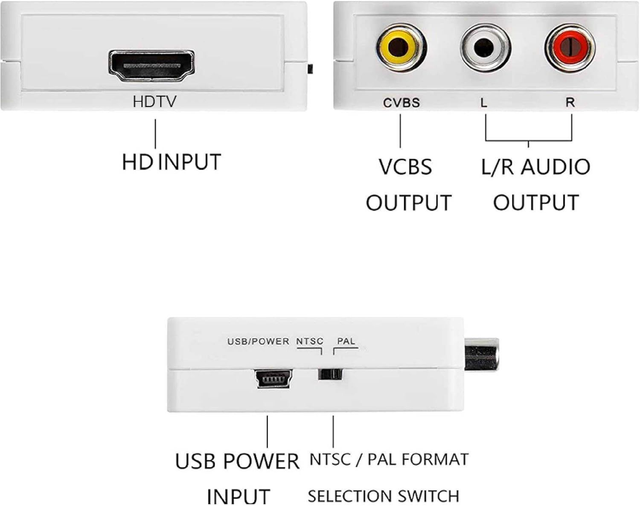 - Ce produit N'EST PAS BIDIRECTIONNEL, il ne fonctionne que de HDMI à AV. Avant d'acheter, vous devez prendre en compte que les connecteurs RCA doivent être branchés à l'écran (moniteur, TV, projecteur). Si vous connectez le HDMI à votre écran, le produit ne fonctionnera pas. Il ne fonctionnera pas non plus avec des dispositifs ayant des résolutions supérieures à Full HD (1080p)